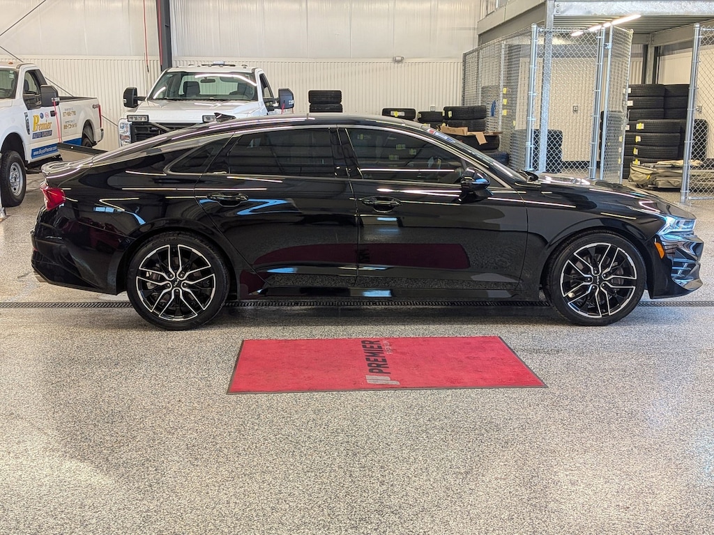 YOUR CHOICE! KIA CERTIFIED OR NATIONWIDE LIFETIME POWERTRAIN WARRANTY!, 1 OWNER ACCIDENT FREE VEHICLE HISTORY, * SUNROOF / MOONROOF, * NAVIGATION, K5 GT, 8 Speed Dual Clutch, Ebony Black, Black w/Cloth/Leatherette Seat Trim, 10-Way Power Passenger Seat, 4-Wheel Disc Brakes, Active Sound Design, Apple CarPlay & Android Auto, Auto High-beam Headlights, Auto Up/Down Rear Windows, Automatic temperature control, Bose Premium Audio, Brake assist, Bumpers: body-color, Carpeted Floor Mats, Delay-off headlights, Driver vanity mirror, Emergency communication system: UVO eServices, Four wheel independent suspension, Front Bucket Seats, GT1 Package, Heated Sport Bucket Seats, Heated Steering Wheel, Leather-Wrapped Gear Shift Knob, LED Projection Headlights, Low tire pressure warning, Memory Driver's Seat & Outside Mirrors, Navigation System, Navigation-Based Smart Cruise Control - Curve, Panic alarm, Parking Collision Avoidance-Assist - Reverse, Parking Distance Warning - Forward & Reverse, Power Child Lock, Power Folding Outside Mirrors, Power moonroof, Power windows, Rear window defroster, Remote keyless entry, Safe Exit Assist w/Lock, Spoiler, Steering wheel mounted audio controls, Surround View Monitor, Telescoping steering wheel, Traction control, Trip computer, Turn signal indicator mirrors, Variably intermittent wipers, Ventilated Front Seats, Wheels: 8.0J x 19" Gloss Black Machined Finish Alloy. Certified. Priced below KBB Fair Purchase Price!