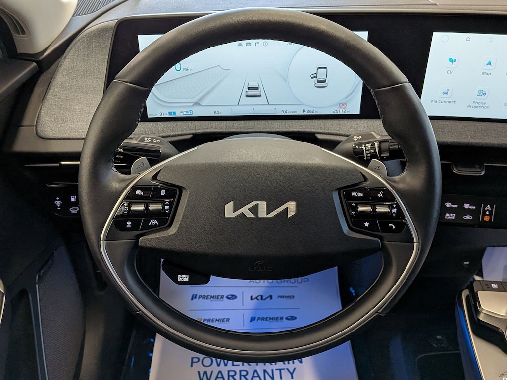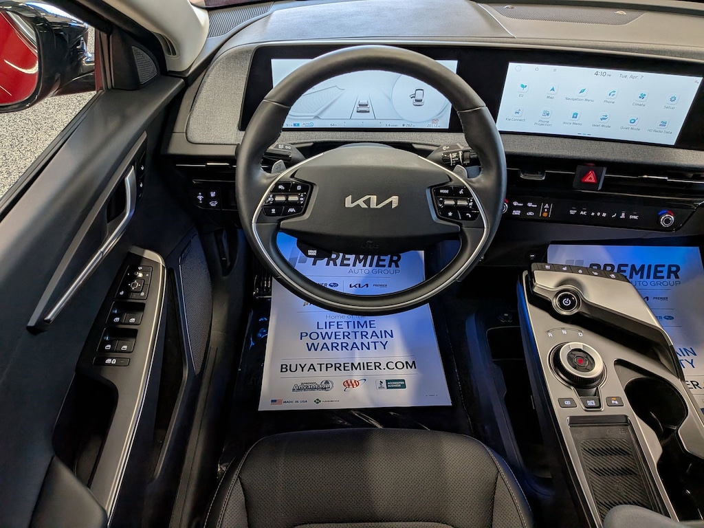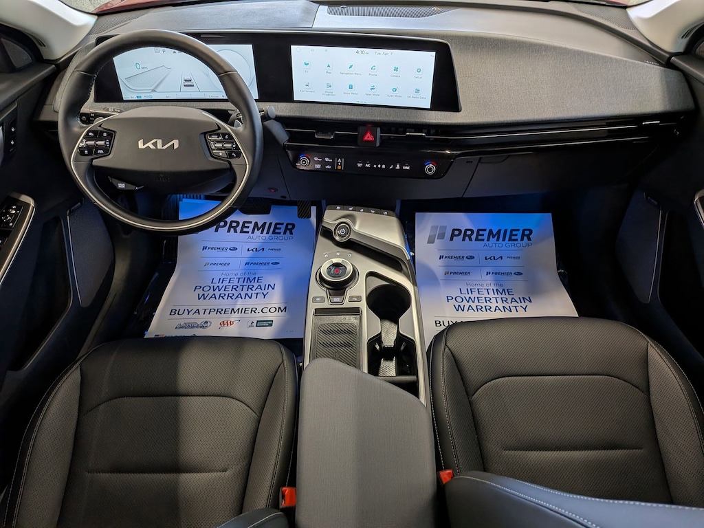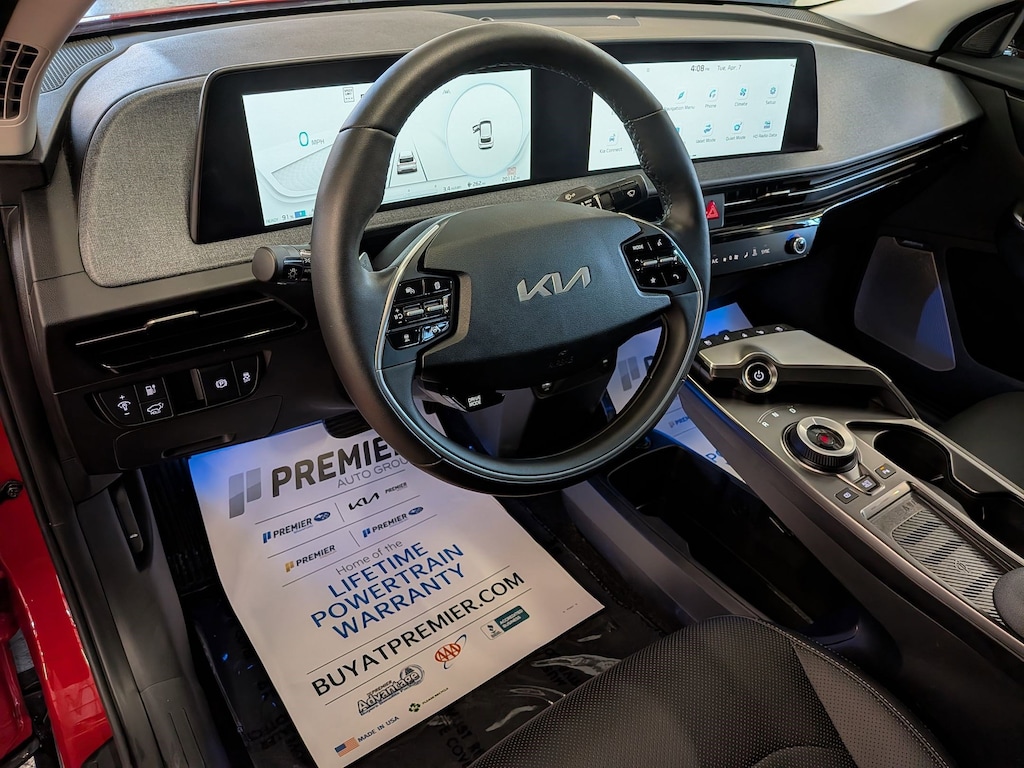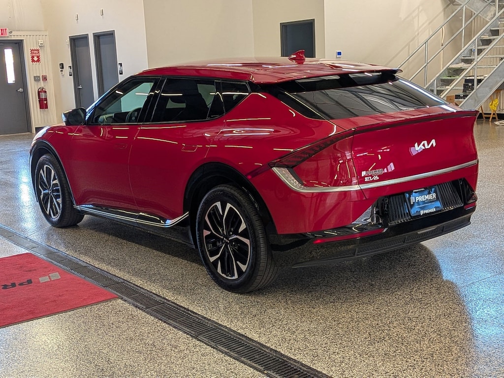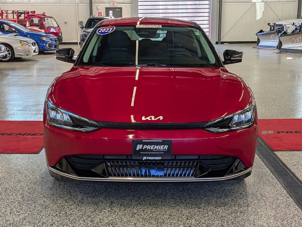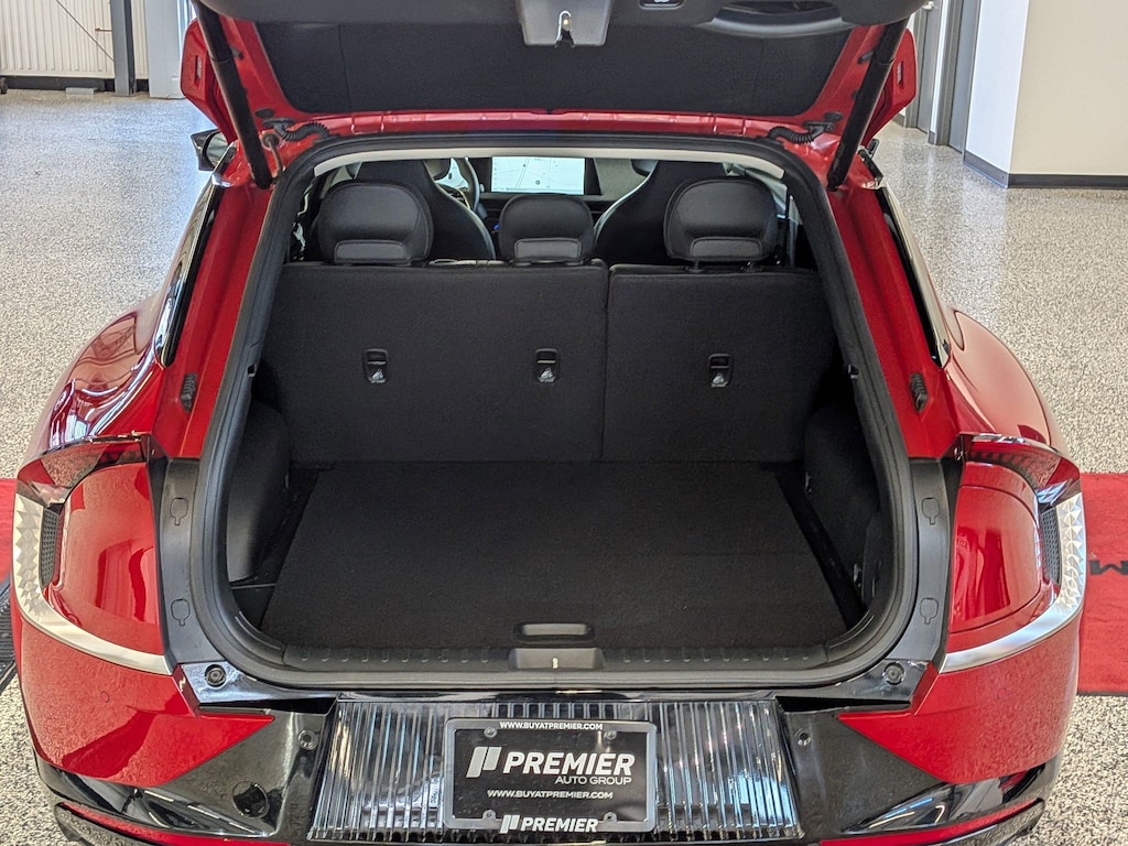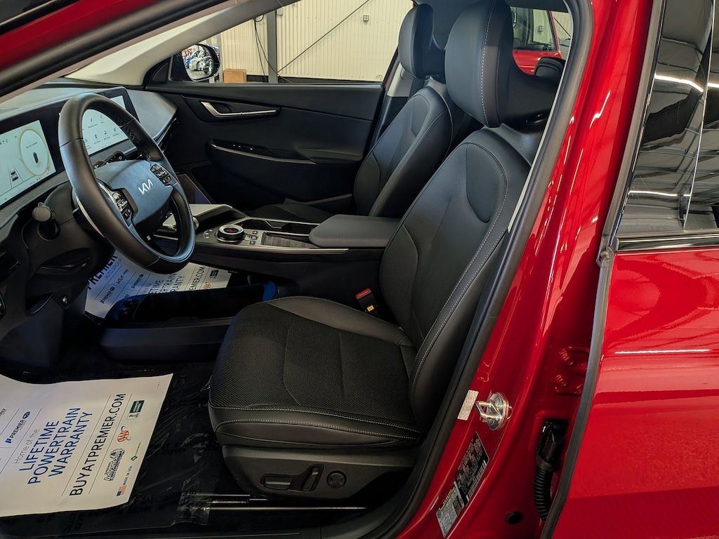 KIA CERTIFIED PREOWNED. 1 OWNER ACCIDENT FREE VEHICLE HISTORY, * NAVIGATION, EV6 Wind, Electric Motor, 1-Speed Automatic, Runway Red, Black w/Vegan Leather Seat Trim, 14 Speakers, 4-Wheel Disc Brakes, Air Conditioning, Apple CarPlay & Android Auto, Auto High-beam Headlights, Auto-dimming Rear-View mirror, Automatic temperature control, Axle Ratio: 10.650, Brake assist, Bumpers: body-color, Driver door bin, Dual front impact airbags, EC Mirror w/HomeLink, Electronic Stability Control, Emergency communication system, Four wheel independent suspension, Front Bucket Seats, Fully automatic headlights, Heated & Ventilated Front Bucket Seats, Heated rear seats, Heated steering wheel, Illuminated entry, Knee airbag, Memory seat, Navigation system: AVN 5.0 Navigation System, Occupant sensing airbag, Outside temperature display, Panic alarm, Passenger door bin, Power door mirrors, Power Liftgate, Power windows, Radio: Meridian Premium Audio System, Rain sensing wipers, Rear anti-roll bar, Rear seat center armrest, Rear window defroster, Split folding rear seat, Steering wheel mounted audio controls, Telescoping steering wheel, Traction control, Trip computer, Turn signal indicator mirrors, Variably intermittent wipers, Ventilated front seats, Wheels: 7.5J x 19" Black Painted Alloy. Certified.