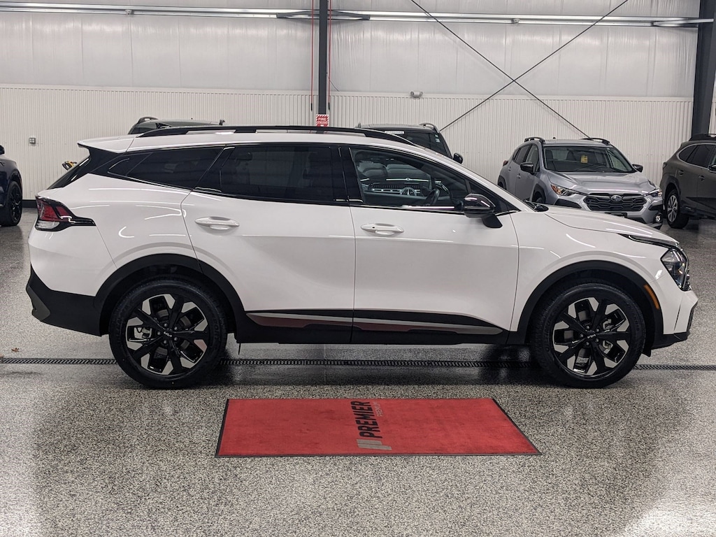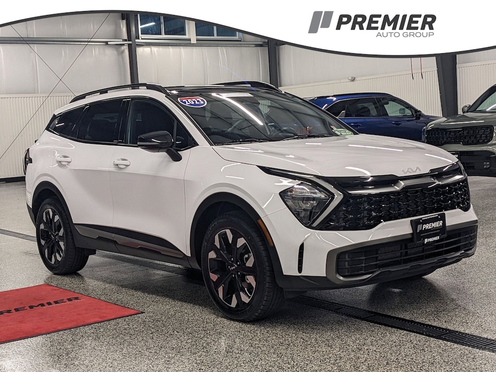YOUR CHOICE! KIA CERTIFIED OR NATIONWIDE LIFETIME POWERTRAIN WARRANTY!, 1 OWNER ACCIDENT FREE VEHICLE HISTORY, MAINTAINED BY PREMIER KIA'S FACTORY CERTIFIED TECHNICIANS, * HARMON/KARDON AUDIO SYSTEM, * SUNROOF / MOONROOF, * LEATHER, * NAVIGATION, APPLE CARPLAY AND ANDROID AUTO, Sportage X-Line, 8-Speed Automatic, AWD, Glacial White Pearl, Black w/Leatherette Seat Trim, 4-Wheel Disc Brakes, 6 Speakers, ABS brakes, Air Conditioning, Alloy wheels, AM/FM radio: SiriusXM, Apple CarPlay & Android Auto, Auto High-beam Headlights, Automatic temperature control, Axle Ratio: 3.648, Brake assist, Bumpers: body-color, Carpet Floor Mats X-Line, Compass, Delay-off headlights, Driver door bin, Driver vanity mirror, Dual front impact airbags, Dual front side impact airbags, Electronic Stability Control, Emergency communication system, Four wheel independent suspension, Front anti-roll bar, Front Bucket Seats, Front Center Armrest, Front dual zone A/C, Fully automatic headlights, harman/kardon® Speakers, Heated door mirrors, Heated Front Bucket Seats, Heated front seats, Illuminated entry, Leather Shift Knob, Leather steering wheel, LED Interior Lighting, Low tire pressure warning, Navigation System, Occupant sensing airbag, Outside temperature display, Overhead airbag, Overhead console, Panic alarm, Panoramic Sunroof, Passenger door bin, Passenger vanity mirror, Power door mirrors, Power driver seat, Power steering, Power windows, Premium Leatherette Seat Trim, Radio: AM/FM/HD Audio System, Rain sensing wipers, Rear anti-roll bar, Rear seat center armrest, Rear window defroster, Rear window wiper, Remote keyless entry, Security system, Smart Power Liftgate, Speed control, Speed-sensing steering, Split folding rear seat, Spoiler, Steering wheel mounted audio controls, Tachometer, Telescoping steering wheel, Tilt steering wheel, Traction control, Trip computer, Turn signal indicator mirrors, Variably intermittent wipers, Wheels: 19" Gloss Black Alloy, X-Line Premium Package. Certified. Priced below KBB Fair Purchase Price!