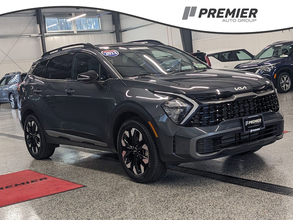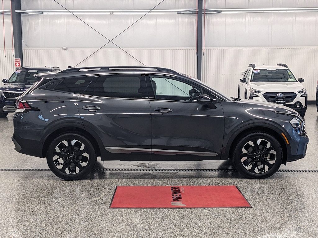 YOUR CHOICE! KIA CERTIFIED OR NATIONWIDE LIFETIME POWERTRAIN WARRANTY!, 1 OWNER ACCIDENT FREE VEHICLE HISTORY, MAINTAINED BY PREMIER KIA'S FACTORY CERTIFIED TECHNICIANS, * KIA DRIVE WISE DRIVER-ASSIST TECHNOLOGY, * SUNROOF / MOONROOF, * LEATHER, * NAVIGATION, APPLE CARPLAY AND ANDROID AUTO, Sportage X-Line, 8-Speed Automatic, AWD, Gravity Gray, Black Artificial Leather, 4-Wheel Disc Brakes, 6 Speakers, ABS brakes, Air Conditioning, Alloy wheels, AM/FM radio: SiriusXM, Apple CarPlay & Android Auto, Auto High-beam Headlights, Automatic temperature control, Axle Ratio: 3.648, Brake assist, Bumpers: body-color, Carpet Floor Mats X-Line, Compass, Delay-off headlights, Driver door bin, Driver vanity mirror, Dual front impact airbags, Dual front side impact airbags, EC Mirror w/HomeLink, Electronic Stability Control, Emergency communication system, Four wheel independent suspension, Front anti-roll bar, Front Bucket Seats, Front Center Armrest, Front dual zone A/C, Fully automatic headlights, harman/kardon® Speakers, Heated door mirrors, Heated Front Bucket Seats, Heated front seats, Illuminated entry, Leather Shift Knob, Leather steering wheel, LED Interior Lighting, Low tire pressure warning, Navigation System, Occupant sensing airbag, Outside temperature display, Overhead airbag, Overhead console, Panic alarm, Panoramic Sunroof, Passenger door bin, Passenger vanity mirror, Power door mirrors, Power driver seat, Power steering, Power windows, Premium Leatherette Seat Trim, Radio: AM/FM/HD Audio System, Rain sensing wipers, Rear anti-roll bar, Rear seat center armrest, Rear window defroster, Rear window wiper, Remote keyless entry, Sage Green Interior Color Package, Security system, Smart Power Liftgate, Speed control, Speed-sensing steering, Split folding rear seat, Spoiler, Steering wheel mounted audio controls, Tachometer, Telescoping steering wheel, Tilt steering wheel, Traction control, Trip computer, Turn signal indicator mirrors, Variably intermittent wipers, Wheel Locks, Wheels: 19" Gloss Black Alloy, X-Line Premium Package. Certified. Priced below KBB Fair Purchase Price!